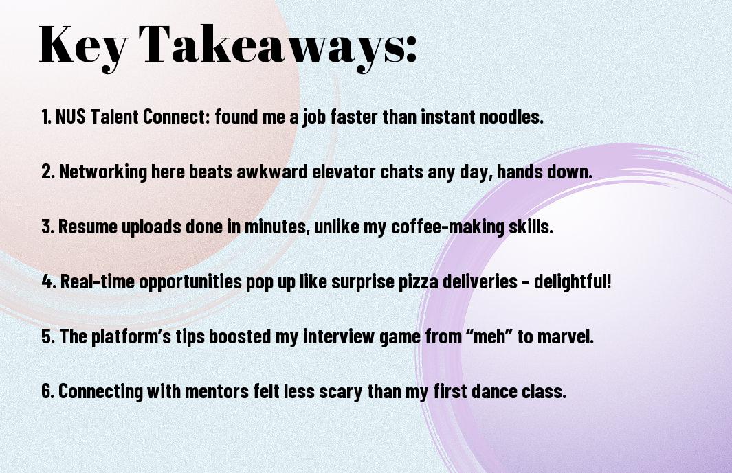 Now, let me share a few delightful tales that showcase the brilliance of NUS Talent Connect. From exchanging awkward hellos to landing dream positions, these stories remind us that sometimes the most unexpected encounters can lead to remarkable opportunities—like that one time I managed to spill coffee all over a potential employer while trying to impress them! Spoiler alert: It didn’t go as planned, but a good laugh can work wonders!