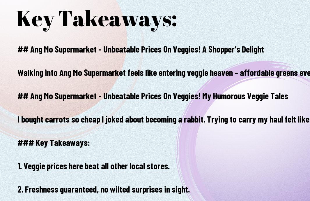With my penchant for bargain hunting, I recently stumbled upon Ang Mo Supermarket, and let me tell you, it’s a veggie paradise! Picture me, arms overflowing with bags of fresh greens and ripe tomatoes, marvelling at the prices that made my wallet breathe a sigh of relief. Just last week, I got a bag full of avocados for the price of a packet of crisps! You could almost hear my fridge cheering as I loaded it up. So, join me as I share my delightful experiences and maybe even give you a chuckle or two.