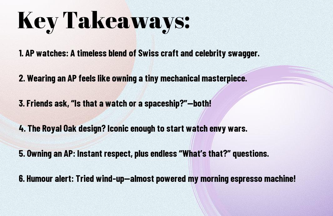 Now, after submerging into the iconic status of the AP watch, I can’t help but chuckle at my first encounter with one. I thought it was merely a fancy timepiece until I spotted a mate desperately trying to convince everyone his was a ‘limited edition’. I grinned, thinking, “Well, mate, mine’s only limited by my understanding of luxury!” In all seriousness, these watches aren’t just about time; they’re a statement. If you’re lucky enough to wear one, expect compliments and cocked eyebrows wherever you go. And maybe a few playful jabs about your ‘wrist real estate’!