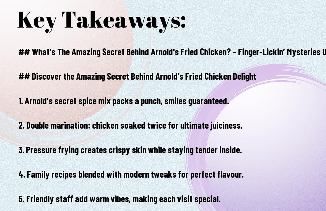 You might be wondering what makes Arnold’s Fried Chicken so irresistible, and let me tell you, the secret is as juicy as the chicken itself! My first experience was a chaotic one—imagine me, a hungry soul, falling victim to its aroma wafting through the air. I couldn’t help but channel my inner foodie while battling the temptation. Spoiler alert: I lost, but oh, what a delightful defeat it was! Join me as we probe into the mouth-watering world of Arnold’s and uncover the secrets behind their finger-licking perfection.
