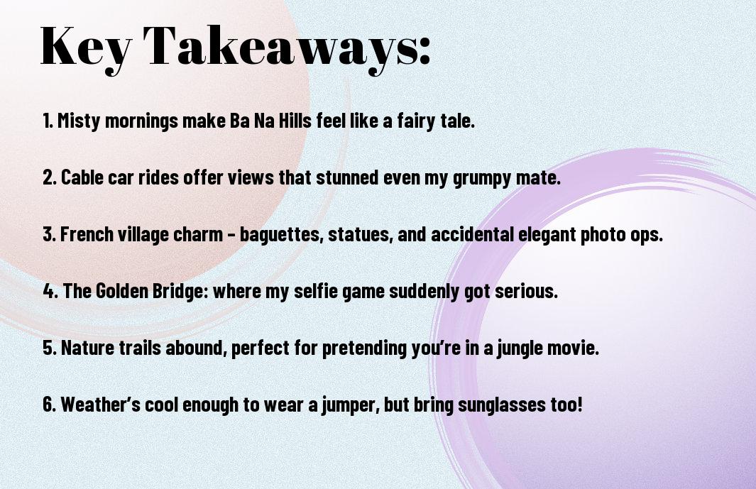 Most people think of beaches and bustling cities when they picture Vietnam, but I must say, my heart found a home in the cool climes of Ba Na Hills. Picture this: I’m standing on the Golden Bridge, lavishly draped in mist, while I wave at the clouds like an overly enthusiastic tourist. Yes, I even tried to catch a cloud, but it turns out they are rather slippery! Join me as I investigate my memorable jaunts and the stunning scenery that will make you pack your bags faster than you can say, ‘Phở’!