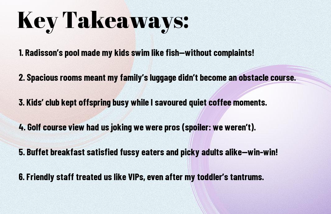 A: Absolutely! At Radisson, we discovered an abundance of engaging activities that left the kids beaming with delight. My kids were utterly mesmerised by the various games in the kids’ club. I even decided to join in, convinced that my Lego-building skills were top-notch. Let’s just say the kids ended up building a Titanic masterpiece, while my creation resembled a confused pancake. There’s also a Family Karaoke Night (trust me, it’s best to reserve the mic for the children) and a mini golf course that had my husband and I battling it out while the kids gleefully cheered, “Mummy, you missed again!”