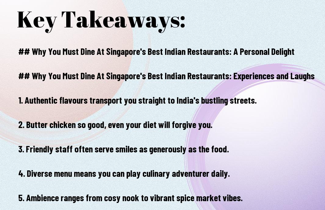 As I embarked on my culinary journey through Singapore’s top Indian restaurants, the whirlwind of flavours and aromas left me beaming with delight. Each dining experience brought joy, laughter, and, at times, a little chaos! From being served on a banana leaf to tackling some fiery curries, I couldn’t help but relish every moment while occasionally contemplating my spice tolerance. Buckle up; my adventures are about to unfold!