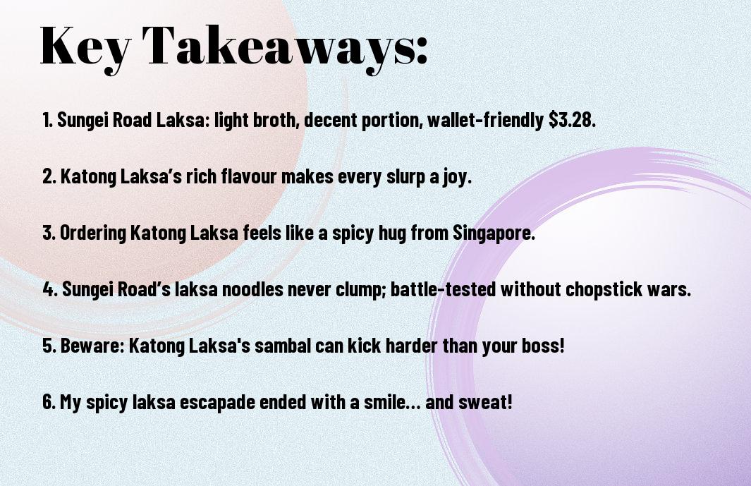 So, if you’re ever in Singapore and find yourself on a laksa pilgrimage, make sure to swing by Sungei Road Laksa for a taste that’s as light as a feather, leaving room for your next culinary adventure. I still chuckle thinking about my struggle to finish a bowl of 328 Katong Laksa—those portions are no joke! Each slurp was a delicious battle between my taste buds and my tummy. Honestly, it’s a flavourful experience that tickles your palate while keeping your stomach happily satisfied. Go on, indulge; just be prepared to loosen that belt afterwards!