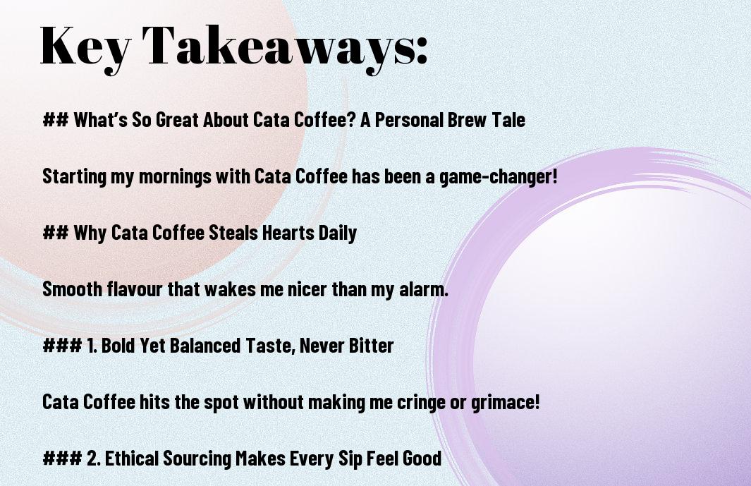 Cata Coffee brings a wonderful blend of flavours and happiness to my mornings, often accompanied by a chuckle or two. Each cup seems to tell a story, often one of my own entertaining misadventures in the quest for the perfect brew. I’ve found that as I sip on this delightful brew, the world feels a little brighter, and who doesn’t want a sprinkle of joy with their caffeine fix? Besides, let’s face it, a good coffee has the power to turn a grumpy morning into a bright day—much like how a cat video can soothe frayed nerves!