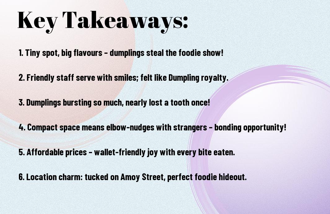 It’s a delight to stumble upon Dumpling Darlings on Amoy Street—this compact eatery is a treasure trove of flavour! My first visit had me grinning like a Cheshire cat as I tackled their infamous spicy dumplings; let’s just say, they brought tears to my eyes, and not just from the heat! Surrounded by fellow dumpling enthusiasts, I realised I could easily call this my second home if it weren’t for the calories. Join me as I share my hilarious culinary escapades and what truly makes Dumpling Darlings a must-visit!