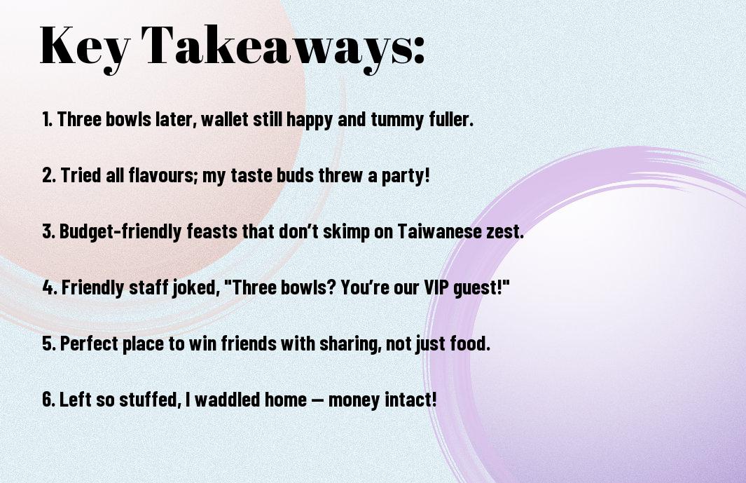 Understanding the essence of this place means embracing not just the food but the joy that comes with it. Every bowl tells a story, from the traditional Taiwanese recipes to the modern twists that make you smile. It’s a genuine celebration of culture and culinary artistry, where each bite is a reminder that good food is best enjoyed in the company of loved ones. So, grab your friends and join in – it’s a feast that invites everyone to the table, with flavours that dance in your mouth and laughter echoing around you!