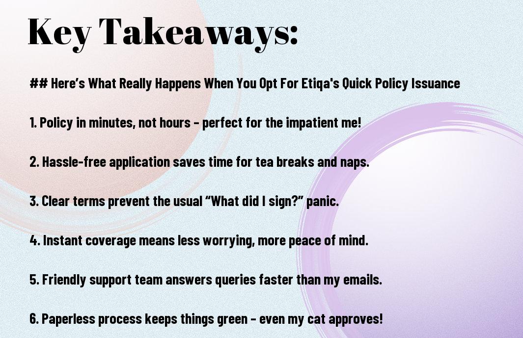 Policy issuance often resembles a lengthy process, doesn’t it? But when I opted for Etiqa’s Quick Policy Issuance, it was like finding a magic button that fast-forwards the whole process. Picture this: I thought I was about to look into a sea of paperwork and bureaucracy, but instead, I found myself laughing over a cheeky cup of tea while my policy got sorted out faster than I could say “insurance!” Buckle up; I’m here to share my quirky journey through Etiqa’s speedy service!