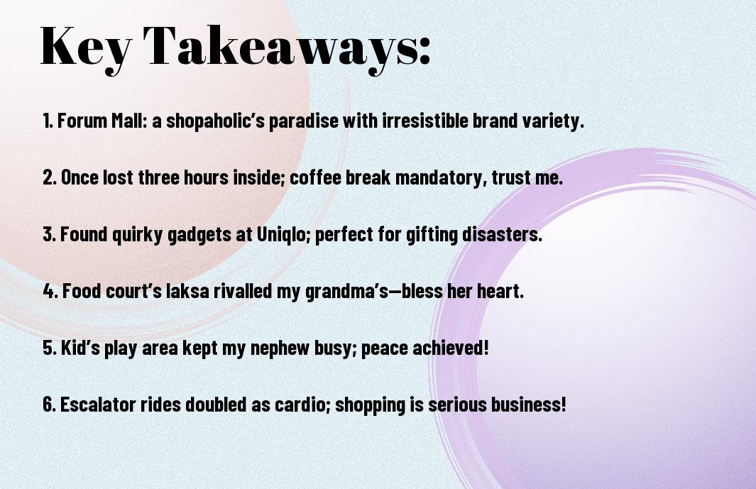 Clearly, if you’re wandering through Forum Shopping Mall, you’re in for a treat with the plethora of lifestyle brands. There is something to satisfy everyone’s interests, ranging from chic fashion labels to top-notch beauty products. I once lost track of time browsing all the fantastic shops – my bank account wasn’t pleased, but my wardrobe was certainly grateful!