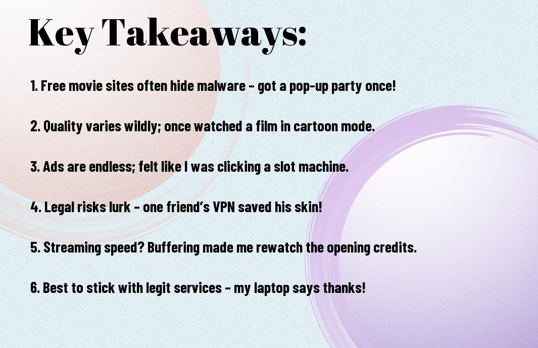 A: Imagine this: you’re just about to watch the latest blockbuster when suddenly your computer starts sounding like a broken kettle and throws up pop-ups like confetti at a wedding. Free movie websites often come with the risk of malware and viruses, which can just ruin your binge-watching plans. In my own experience, I once clicked on a dubious-looking ad and ended up with a virus that made my computer run slower than a snail on a stroll! So, always think twice before clicking that “Watch Now” button. Your computer will thank you!