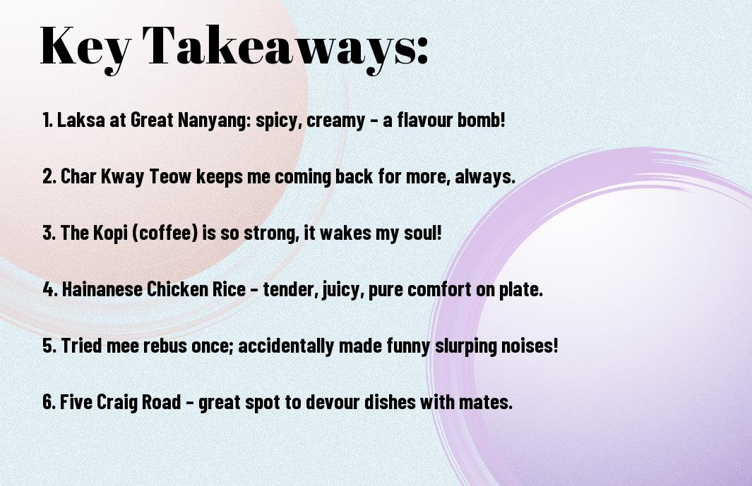 A: Oh, where to begin? My absolute favourite has to be Hainanese chicken rice. I’ll never forget the first time I tried it – it was as if the heavens had opened and delivered a plate of pure delight! The chicken is so tender it practically melts in your mouth, and what about the rice? It’s so fragrant that it might just make you swoon. I’ve been known to get a bit competitive during a family meal, seeing who can eat the most rice while simultaneously trying to maintain my decorum. I usually end up with rice all over my lap! Let’s just say it was a fun experience—especially for my relatives who find humour in my culinary clumsiness.