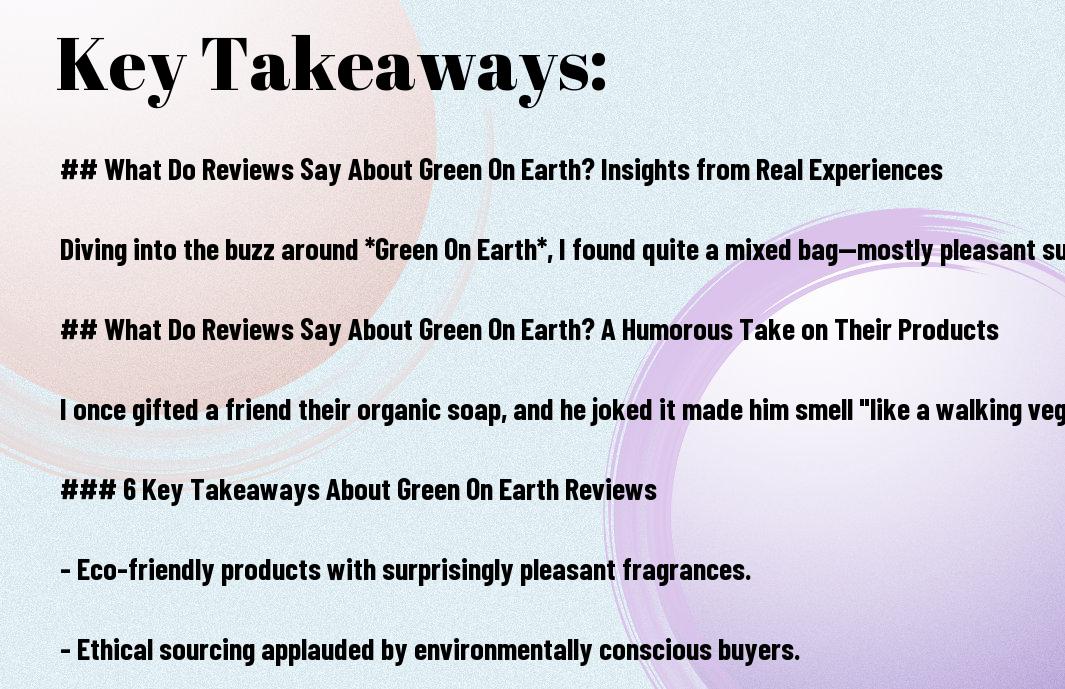 The buzz around Green On Earth seems to have permeated all corners of the internet, leaving many of us wondering if it’s the latest trend or a genuine game-changer. Equipped with an inquisitive mindset, I immersed myself in the reviews, and I must admit, the enthusiasm is undeniable. From eco-warriors to casual consumers, opinions are swirling around this brand like leaves in a brisk autumn wind. It’s like being in a global café where people can’t stop raving about their latest sustainable finds – and the coffee’s not even that bad!