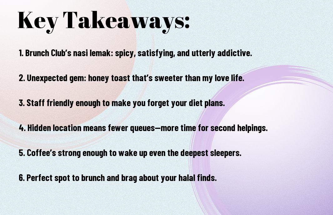 In conclusion, my exploration of hidden halal café gems has been truly enjoyable. Take Brunch Club by The Halal Corner at 10 Jalan Pisang, for instance; their fluffy pancakes nearly had me singing! I shovelled in plate after plate of their exquisite halal dishes while trying not to spill syrup on my shirt – an impressively difficult task! Every visit offers a fresh experience, and if you’re seeking delectable meals accompanied by laughter, this place is the perfect destination for brunch bliss. You won’t want to miss it!