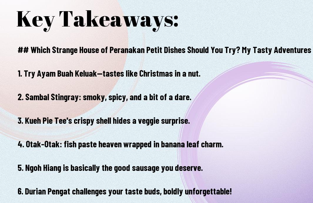 Dishes that intrigue and delight your taste buds are what I live for! My recent culinary adventure through the vibrant world of Peranakan cuisine had me questioning my own life choices, especially when faced with colours and flavours I’d never encountered before. From spicy laksa that had me sweating more than a sauna session to charming kueh kueh that could rival a rainbow, my taste journey was nothing short of humorous! So, grab a seat, and let me guide you through my delightful misadventures with these strange house of Peranakan petit dishes that you simply must try!
