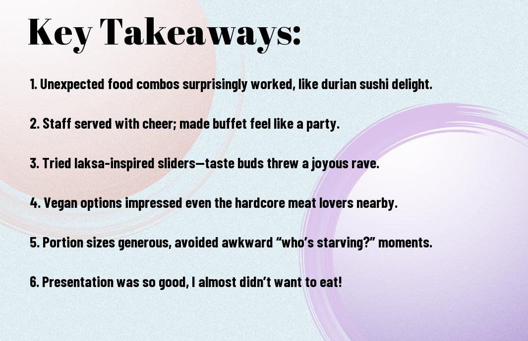 With a penchant for unexpected flavour combinations, I recently dived into the world of How’s Catering, a gem right here in Singapore. Imagine my delight when they paired spicy curry with sweet chocolate cake – yes, you read that correctly! It was like a wild party in my mouth, where the guests were a bit confused but thoroughly entertained. And let’s not even talk about the time I tried their sushi pizza; I still can’t decide whether I loved it or if it was just my stomach playing tricks on me after a glass (or three) of wine. Join me as I commence on this culinary adventure!
