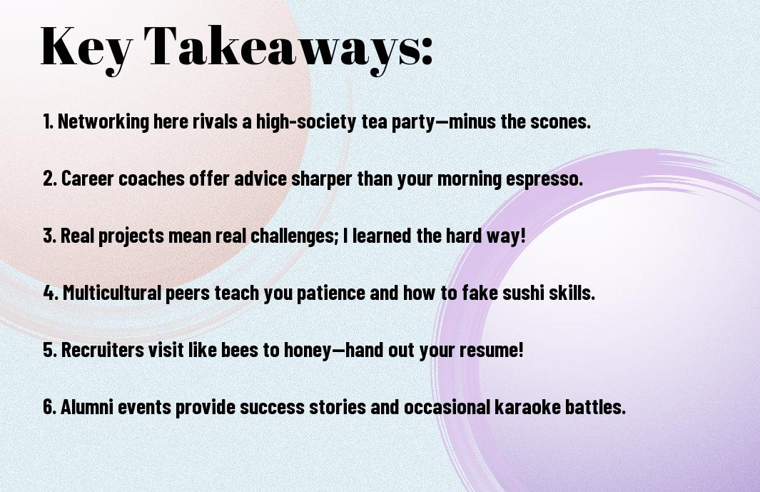 A: Let’s talk about career coaching – a rather posh term for becoming a personal cheerleader (without the pom-poms, though!). A career coach guides each student through their options. My coach was a former executive with more stories than a Shakespearean drama! Over coffee, we mapped out my career goals. Interestingly, I harboured lofty aspirations of becoming the next Steve Jobs, but my coach quickly pointed out that my aptitude for creating slides was more appropriate for a consulting role! By the end of our sessions, I had developed a clear path and a solid plan, and I was surprised to discover that career coaching could also incorporate witty banter.