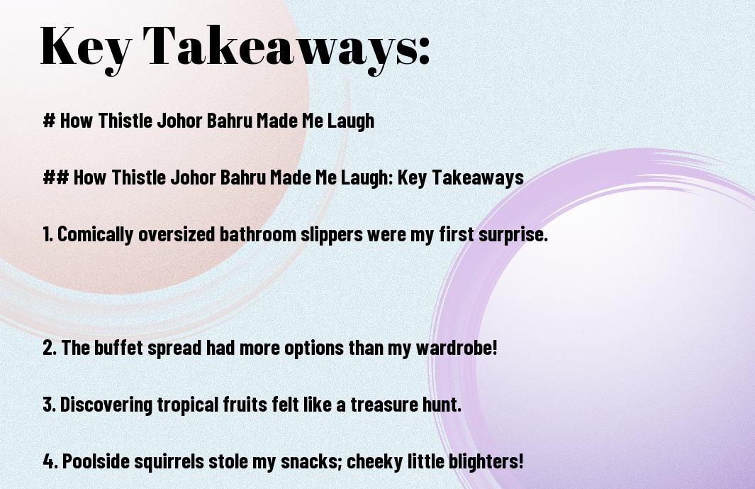 Just when I thought my trip to Thistle Johor Bahru was going to be a serene getaway, I found myself chuckling through the experience. From mistakenly ordering a ‘watermelon smoothie’ that tasted suspiciously like salad dressing to getting caught in a kids’ dance-off at the pool, laughter became my unexpected companion. I’ll share how the quirky moments turned my stay into a delightful comedy show, proving that sometimes the most unforgettable experiences are the ones that have you doubled over in laughter.