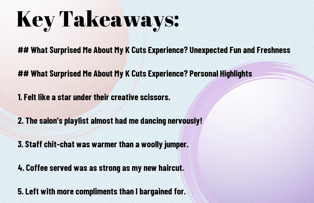 Allow me to share my unexpected experience with K Cuts! One would think a haircut is a straightforward affair, but after my visit, I found myself surprised in ways I never would have guessed. From the quirky decor to my stylist’s uncanny resemblance to a pop star, it was an experience that had me giggling and gasping in equal measure. Join me as I examine the top ten things that took me completely by surprise during my K-Cuts escapade!