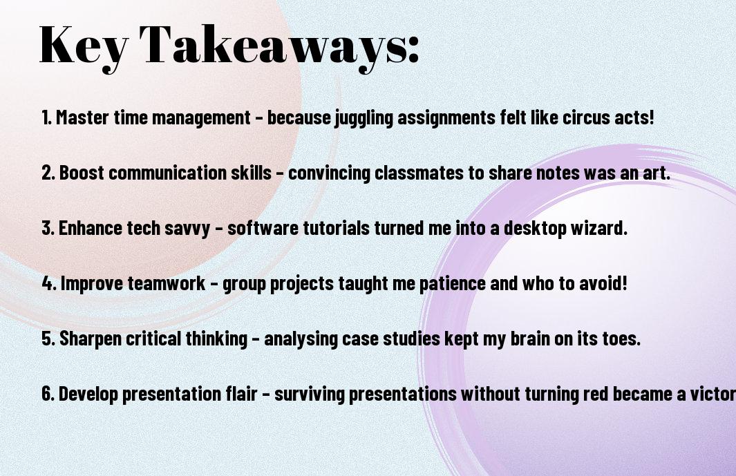 Against all odds, I found that working on group projects could either be the highlight of my semester or an absolute disaster. One time, we decided to make a presentation on environmental sustainability, but I accidentally sent out the wrong version that included our secret snack chat instead of the proper content. The astonished faces I received during my presentation were priceless – who knew recycling would come second to biscuits and crisps?