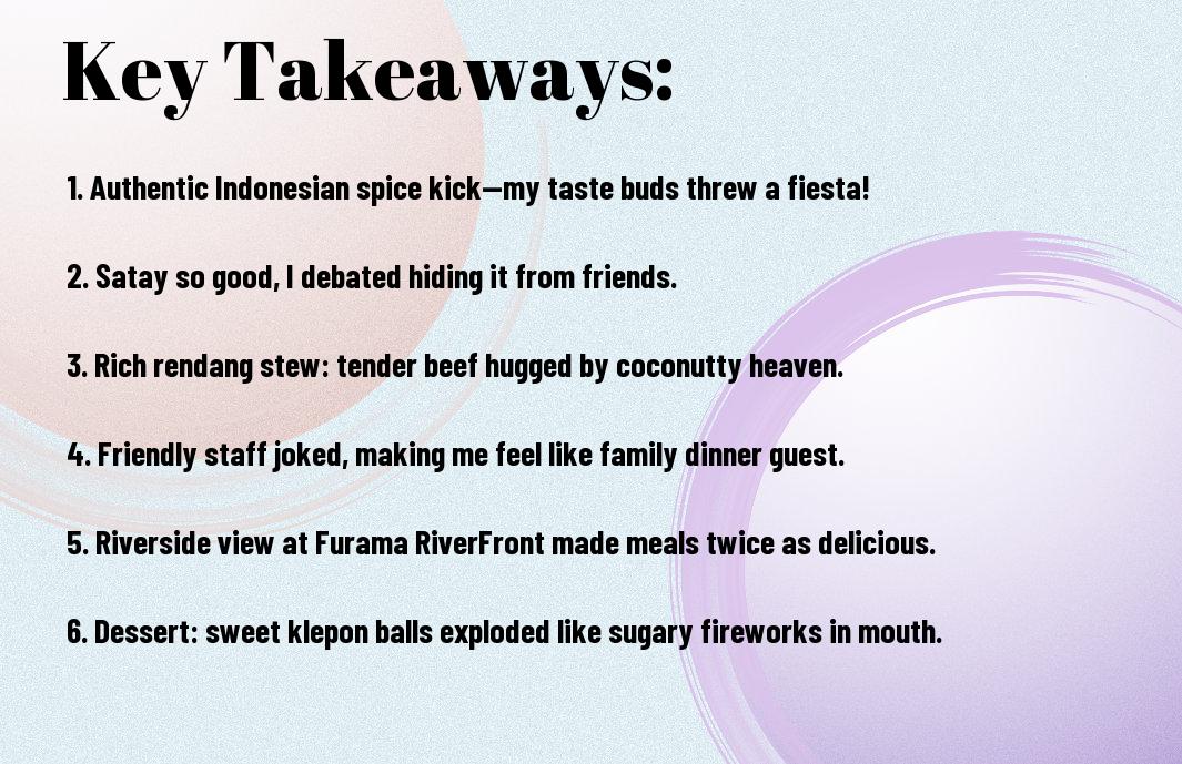 The experience at Kintamani Indonesian Restaurant was a delightful whirlwind of flavours that left my taste buds dancing and perhaps even doing the cha-cha! I still chuckle when I recall my initial experience with their spicy sambal; one moment I was savouring its deliciousness, and the next, I found myself gulping it down like a lost fish! The warm hospitality made me feel like part of their family, while the stunning river view was enough to make anyone feel like a celebrity. If you’re seeking a unique culinary experience with a touch of humour, I strongly suggest exploring Kintamani!