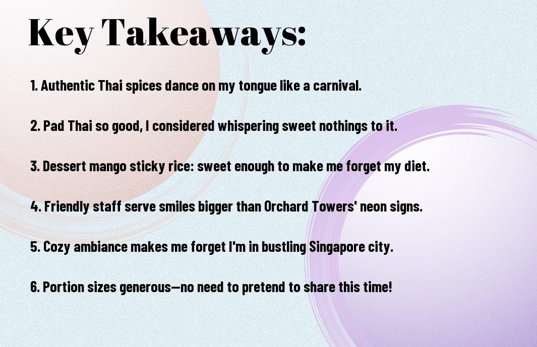 Throughout the years, I’ve explored numerous restaurants, yet Korat Thai Cafe has captured both my affection and my stomach. This little gem, nestled in Orchard Towers, boasts more flavour than my Auntie May’s infamous curry, which is quite a statement. As soon as you enter, a delightful chaos of smells tantalises your senses. So, prepare to discover why diners, including yours truly, are captivated by this Thai paradise!