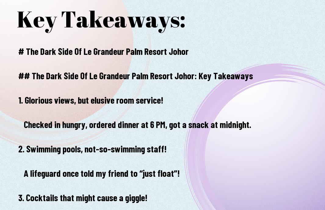 Resort life is meant to be a splash of luxury and relaxation, but my experience at Le Grandeur Palm Resort Johor was more like a watery mishap. Picture me trying to enjoy a tranquil swim but instead encountering what can only be described as a “not-so-delightful” pool experience — let’s just say I had a little too much company in the form of overly friendly insects! And as for the so-called “gourmet dining”, let’s be honest: I’ve had better culinary experiences with a microwave and some instant noodles. Join me as I delve into the not-so-glamorous moments of my stay; it might just make you giggle!