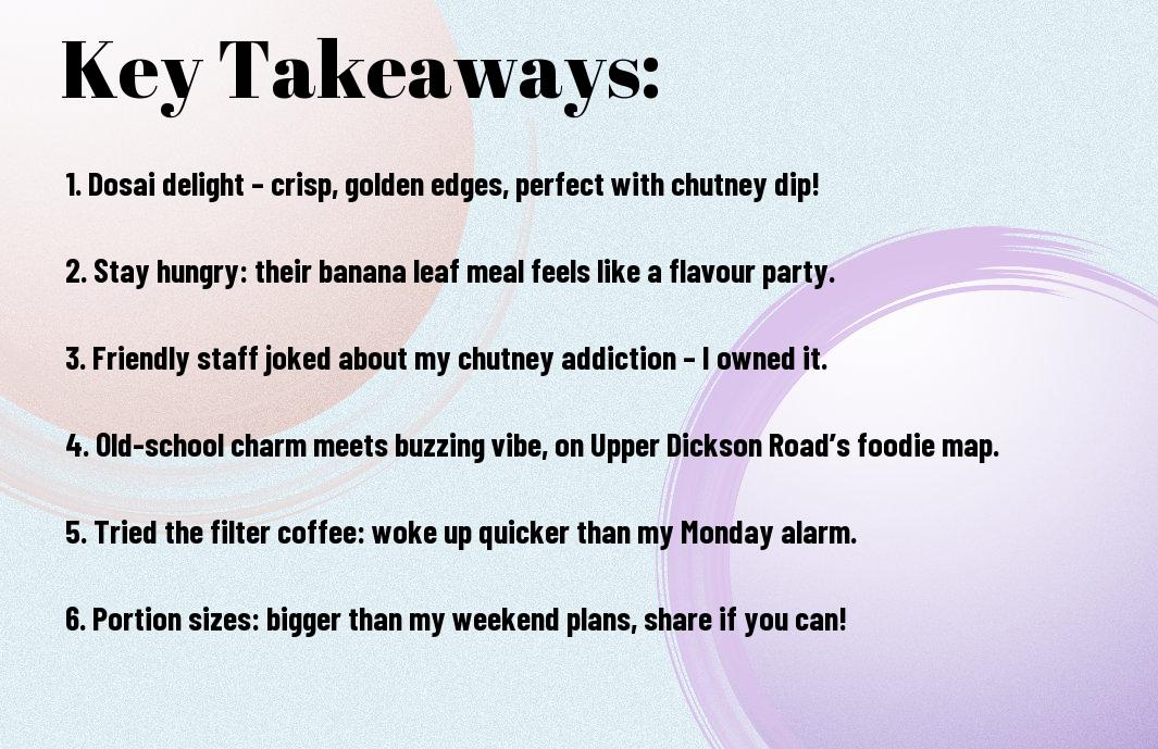 A: Absolutely! The staff are as warm as a freshly made pav bhaji. I once joked with a waiter about how I couldn’t decide whether to order the idli or the vada, and he suggested I try both. By the end of it, I felt like a contestant on a culinary version of ‘The Chase’—full, joyful, and slightly worried about the consequences. They care about your dining experience, and it shows. So, no matter how indecisive you are, they’ll make it feel like a walk in Little India!
