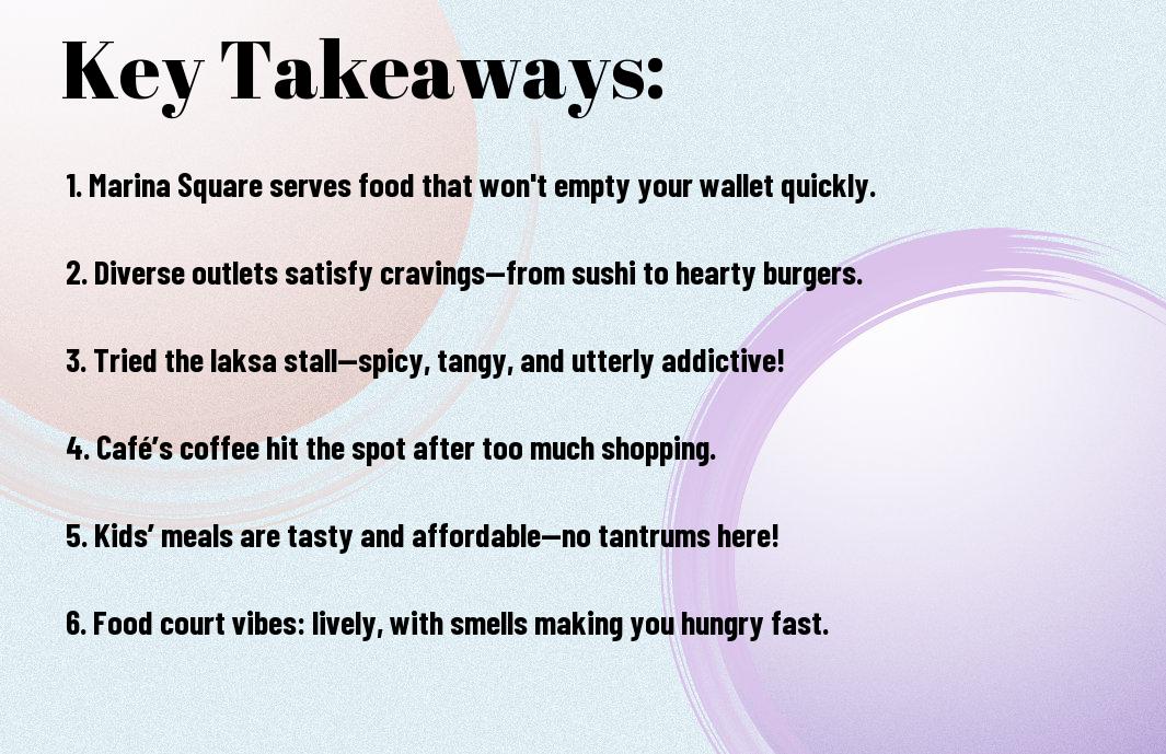 You haven’t truly experienced Marina Square until you’ve savoured its affordable culinary delights! From past escapades of juggling my lunch tray like a circus act to almost mistaking a giant pancake for a frisbee, I’ve unearthed a treasure trove of budget-friendly eateries that cater to every craving. Whether you fancy a quick bite or a feast fit for a king, Marina Square’s diverse selection ensures your stomach will thank you, even if your wallet may grumble a bit. Join me as I navigate this food wonderland filled with laughter and scrumptious treats!