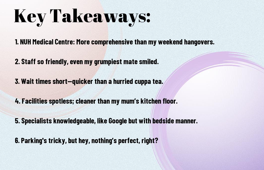 Summing up, my experiences at NUH Medical Centre have been like a rollercoaster ride – thrilling yet slightly terrifying! From the time I mistook the waiting area for a trendy café (who knew waiting could come with such a selection of fussy plants?), to the friendly staff who managed to soothe my nerves with a dose of humour, I felt surprisingly at ease. With their top-notch facilities and knowledgeable doctors, I’d say they’re pretty good at what they do, even if the coffee machine could use a makeover. So, is it the best? Well, it might just edge out my mum’s chicken soup!