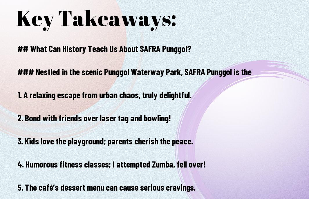 Summing up, if there’s one thing history has taught me about SAFRA Punggol, it’s that it’s the perfect blend of relaxation and fun! I fondly recall a weekend spent there, laughing with friends over a game of bowling and wondering how I managed to miss the last few pins consistently. As we strolled by the beautiful waterway after, I realised that its charm only grows with time, just like my culinary skills—or lack thereof! So, next time you’re at SAFRA Punggol, cherish those moments; they just might be the history you’ll look back on with a chuckle.