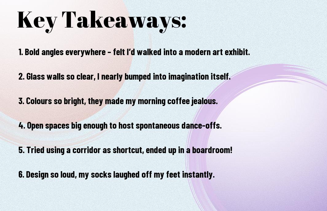 A: Oh, absolutely! The design rulebook must have been discarded in favour of a giant inflatable dinosaur. I recall visiting a conference room that was literally covered in greenery. It was like sitting in a rainforest meeting without the bugs, thankfully! However, the convoluted layout left me wondering if a sloth had joined the design team. Every turn was a surprise, and I half-expected to bump into a toucan (but I didn’t). I suppose the takeaway is, sometimes it’s about the journey and not just the destination—unless you’re looking for an exit, then good luck!