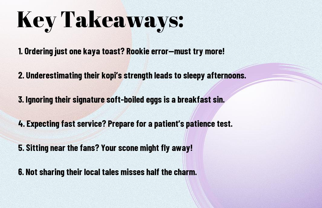 A: Ah, the biggest mistake at Tong Ah Eating House is most definitely thinking you can walk in and order just one dish! I remember the first time I visited; I confidently sauntered up to the counter, eyeing the famous kaya toast and kopi. I thought, “One kaya toast and a coffee? Simple enough!” Fast forward twenty minutes later, I was staring at a mountain of food—satay, laksa, and more toast! My stomach was like, “What have you done?” It’s a culinary trap, where one dish leads to another, and before you know it, you’re on a first-name basis with the servers. Very amusing, but also mildly terrifying!