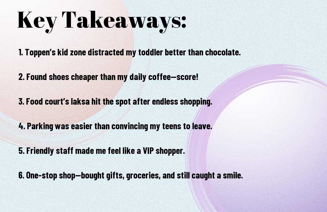 A: The food selection at Toppen is a feast for the senses! From delightful local delicacies to Western treats, you may feel exhausted from the sugar rush after indulging in ice cream, testing your strength of will like a monk. For example, there’s a food court that could easily serve as my new happy place. I’ve savoured everything from sizzling rendang to gourmet doughnuts, which seem to beckon me more than my mother’s! Once, I made the mistake of ordering too many items, resulting in a deliciously glorious food baby that lasted the rest of the shopping trip. Pro tip: always wear stretchy pants—you’ll thank me later when faced with the smorgasbord of flavours awaiting you!
