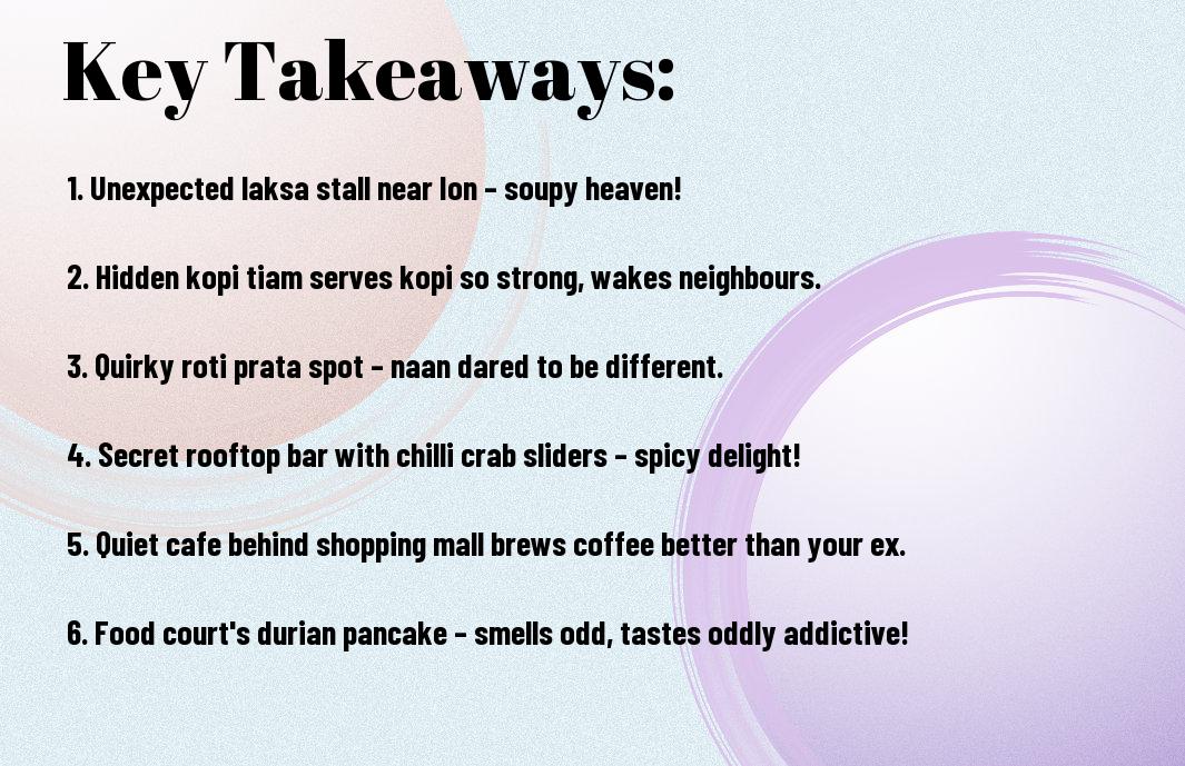 Just when I thought I’d explored all the culinary delights along Orchard Road, I stumbled upon some hidden gems that made my taste buds dance with joy. Imagine this: my goal was to enjoy a sophisticated dining experience, but instead, I found myself seated at a table with a charming owner of a chicken rice stall, who assured me that his secret sauce could bring endless joy. From the cheeky ramen shop that made my face go “How spicy can it be?” to a dessert café where I might have consumed an entire cake in one sitting (no regrets!), these experiences truly made my culinary adventure unforgettable!